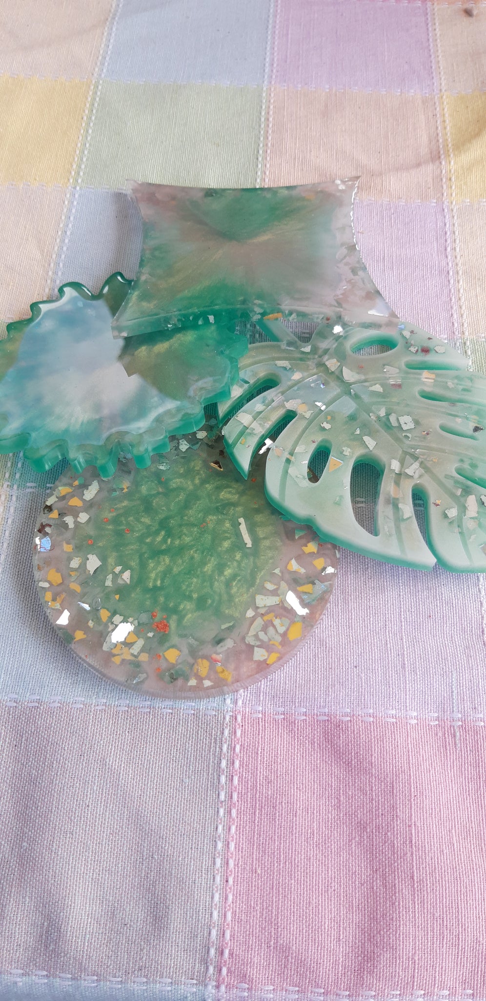 "Coasters" can be used for candles, normal coaster usage, decoration, to match custom wine glasses, as a trinket tray for small earrings, as trivets for the stove, or whatever else you can think of!